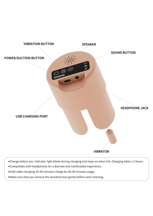 Kiváló minőségű, bőrszerű anyagból készített, férfiaknak ajánlott, valósághűen kialakított, ánuszt és vaginát formázó testnyílásokkal kialakított, 3 szívó és 7 rezgési funkcióval ellátott, aktus közben erotikus hangokat kiadó maszturbátor. Használatával az aktus közbeni önkontroll nagymértékben fejleszthető, így annak ideje jelentősen növelhető.